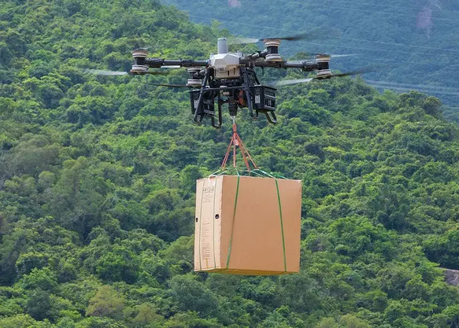 DJI designed FC100 as a delivery platform from day one — payload, winch, and safety built for repetitive logistics near buildings.